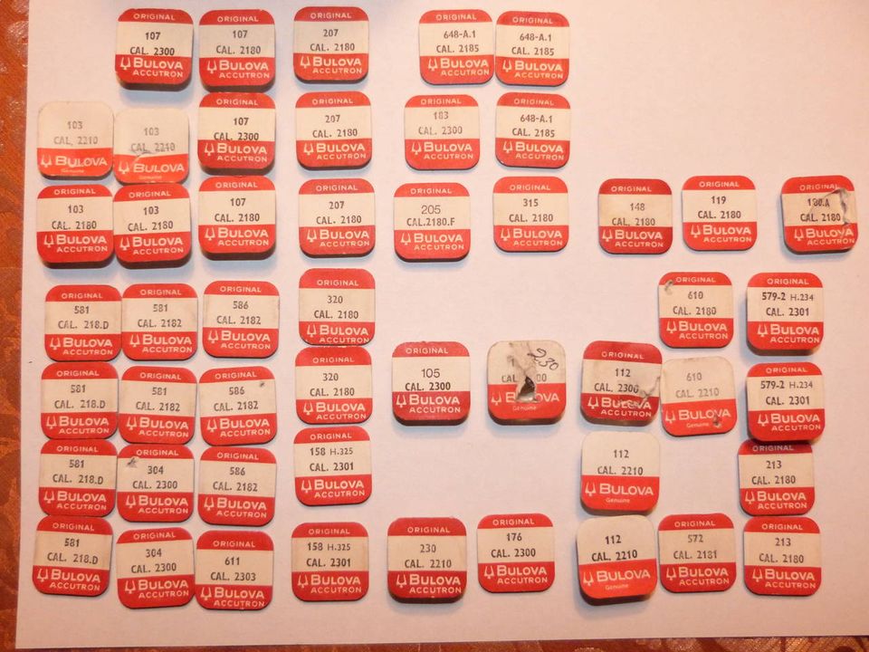 Der Posten umfaßt 50 original verpackte Ersatzteile für Accutron Werke der Marke Bulova. Manche Päckchen sind mehrfach bestückt, andere nur einfach. 3 Packungen sind angebrochen und teilweise Teile entnommen. Um welche Teile es sich handelt entnehmen Sie bitte dem Foto mit der Beschriftung der Päckchen! Ich mache keine weiteren Angaben zum Inhalt des Konvolutes. Bitte beachten Sie, dass Teile für diese Kaliber im normalen Fourniturenhandel oder bei Bulova nicht mehr erhältlich sind!